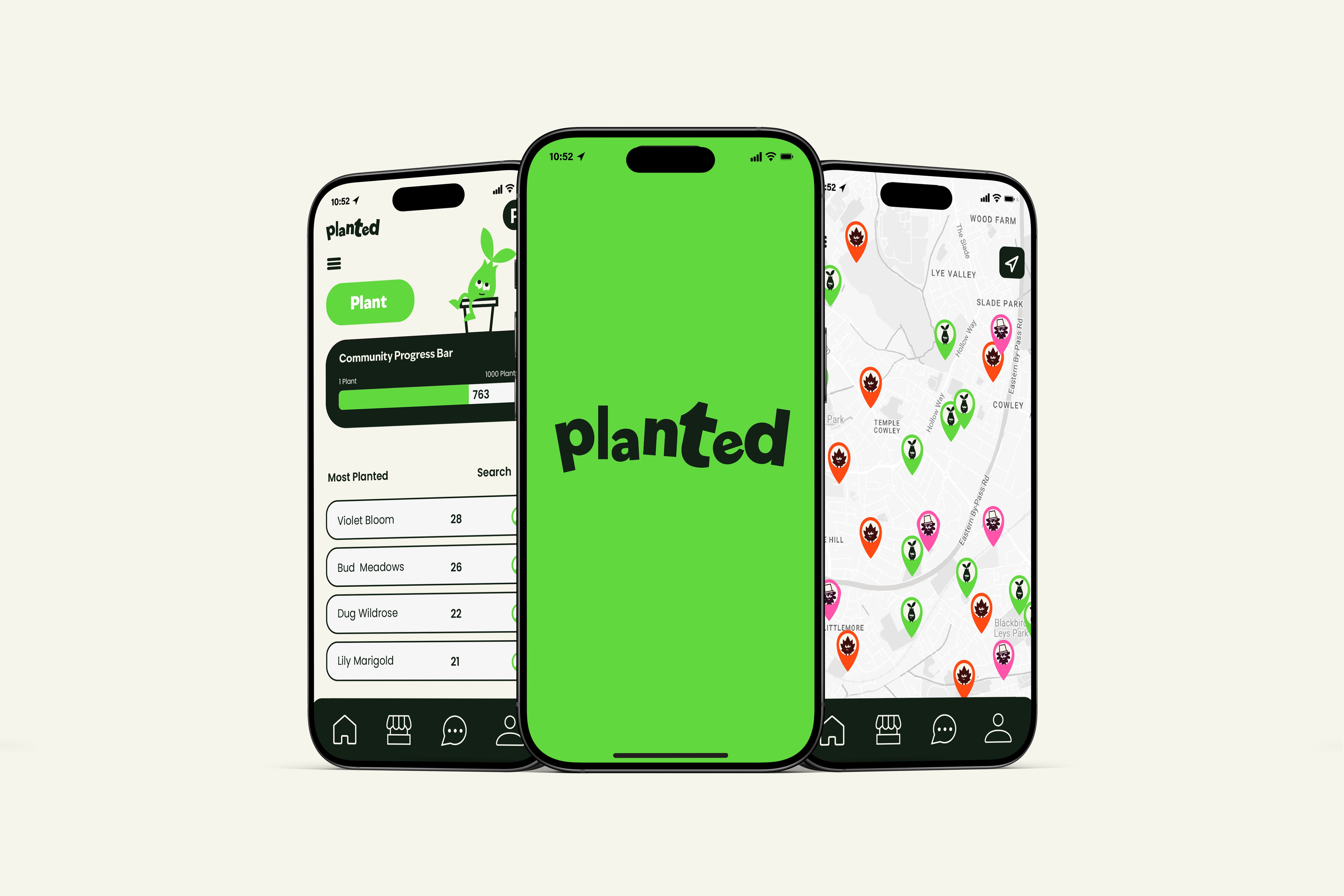This project explores a campaign to promote a healthy city in Cowley (Oxford). By focusing on three select areas: planting, movement, and community engagement. The project was driven by the challenge Cowley faced with a lack of growth and engagement.The goal was to create a strategy that connects residents, encourages engagement, and makes sustainable actions meaningful and fun. To address this, I designed the planted app, a gamified platform that acts as a central hub for the campaign. Posters, stickers, and other materials use QR codes to direct users to the app, creating an easy interaction between physical and digital campaign materials. The app features an interactive map, personalisation features, a points achievement system and friend and community leaderboards. Each pillar of the campaign is represented by a mascot, one for planting, one for movement, and one for community, designed to engage younger audiences first while remaining accessible to families and the wider community. These characters translate different goals into relatable actions, giving the campaign identity a strong appeal. Demonstrating a cohesive, strategic solution to promote urban health and wellbeing in Cowley.